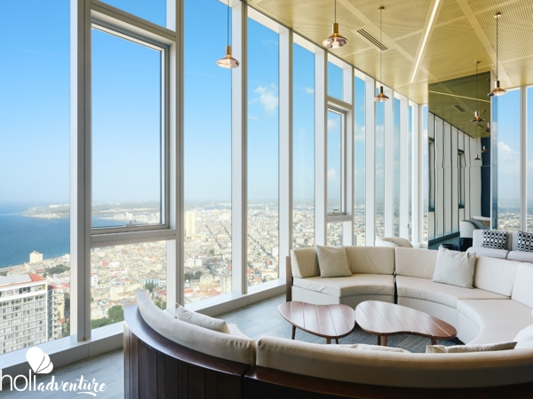 Las mejores vistas de la ciudad en el edificio más alto de Cuba con 155m metros y 42 pisos, proponen una experiencia urbana de altura en el plató natural más grande del Caribe.